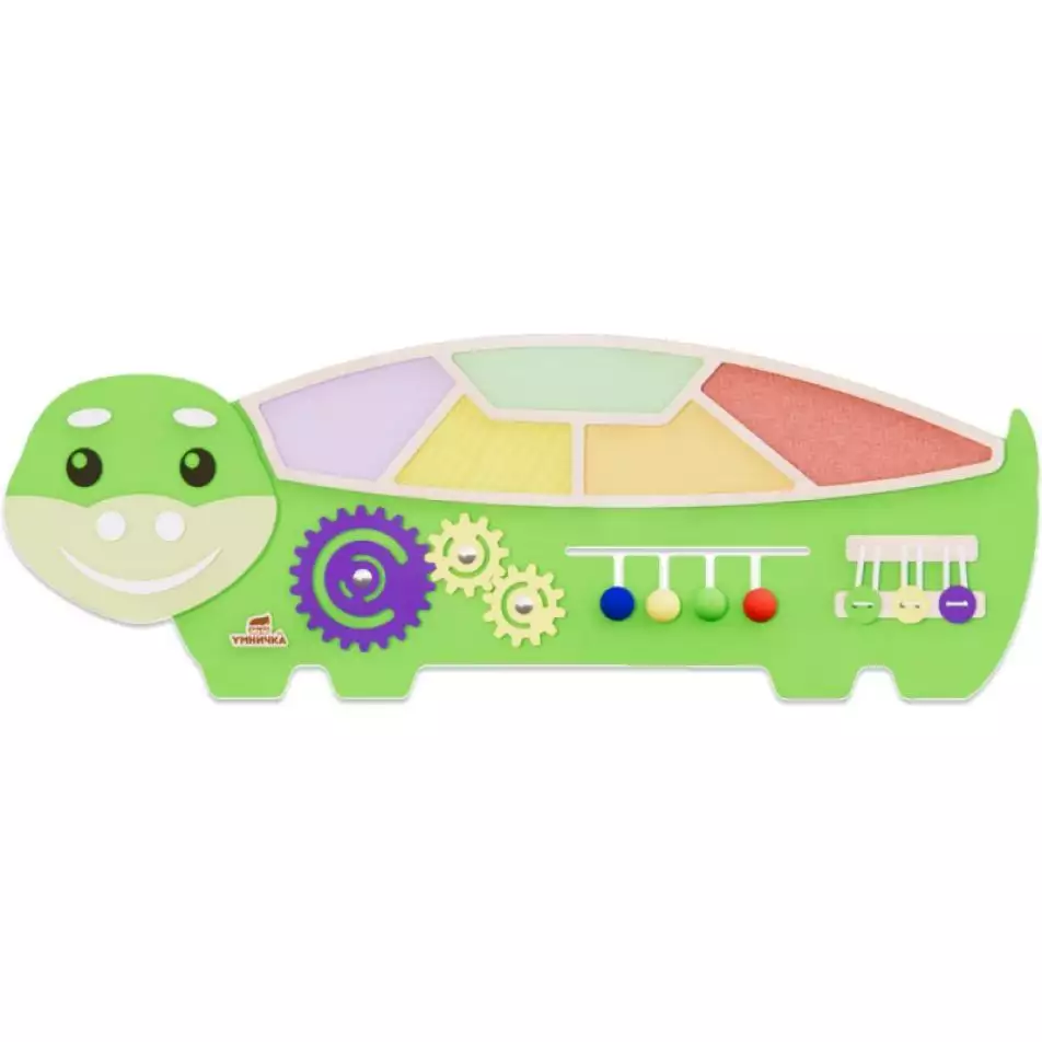Бизиборд «Черепашка» с тактильными панцирями и интерактивными элементами помогает малышам развивать речь, моторику и сенсорное восприятие. Ребёнок может щупать, крутить, тянуть, сопоставлять — и изучать окружающий мир через игру. Подходит для детских садов, особенно в зонах сенсорного развития.